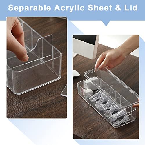 Cable Organizer Storage Box Plastic Cable Cord Management Box Power Cord Organizer Case with 10Pcs Rubber Ties for Office, Home, Desk Accessories Storage Stationery Supplies