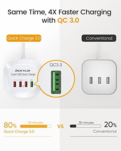 USB Charging Station with Quick Charge 3.0, JACKYLED 4 USB C