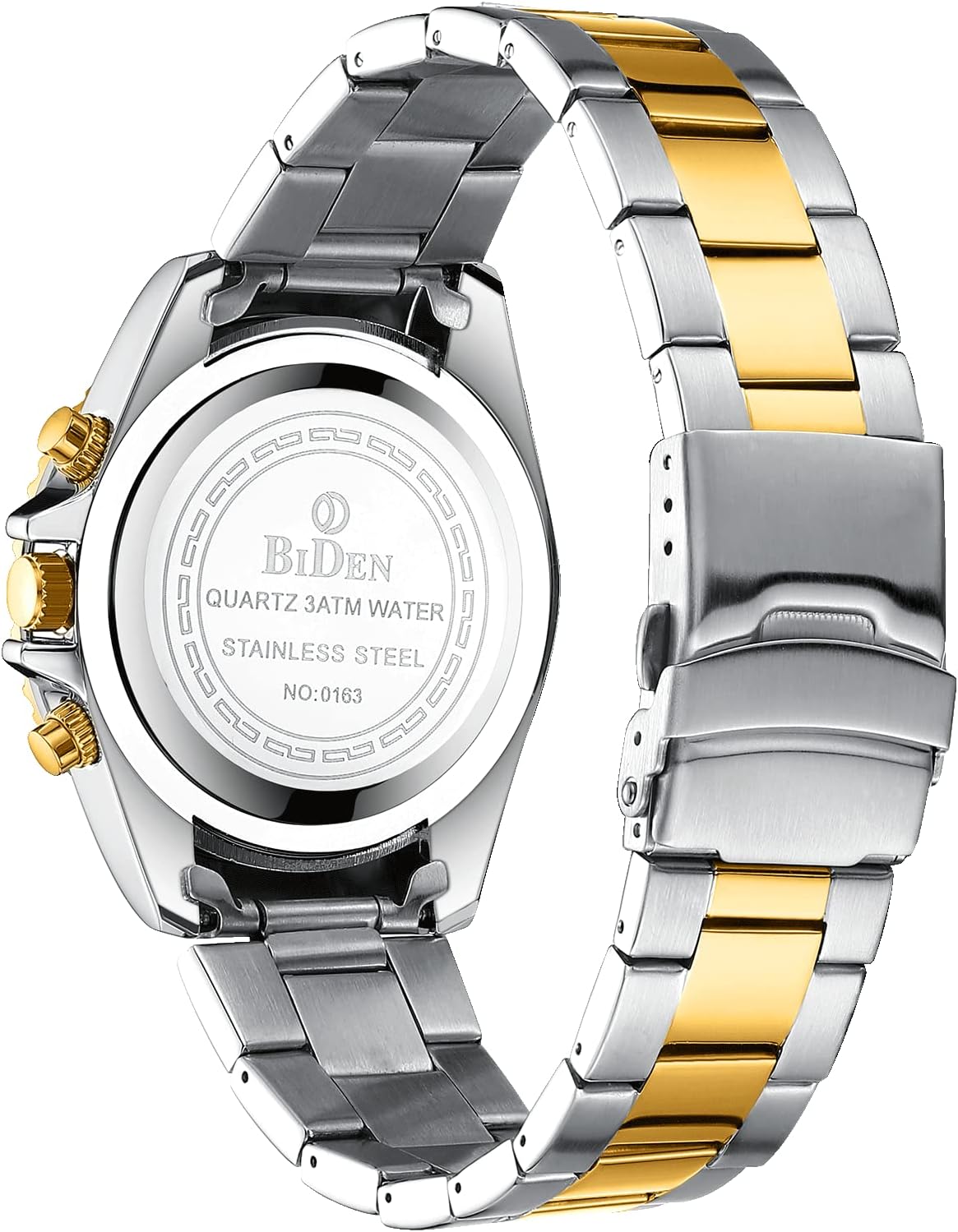 HANPOSH Mens Watches Chronograph Stainless Steel Analog Quartz Watch Waterproof Men's Wrist Watches Business Casual Fashion Watch for Men